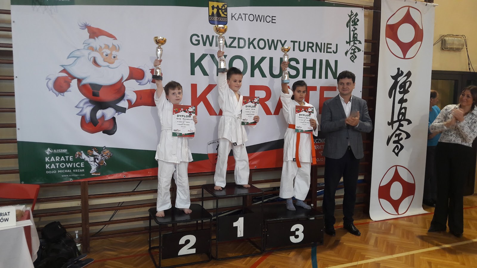 Za nami IV Gwiazdkowy Turniej Kyokushin Karate! ?W świątecznej rywalizacji wzięło udział blisko 170 dzieci z klubów w Katowicach, Orzeszu, Rudzie Śląskiej oraz Myślenicach -zawodników rywalizujących w konkurencjach ido geiko, kata i kumite z podziałem na wiek, wagę oraz stopień zaawansowania. Najmłodszych Karateków dopingowali rodzice, dziadkowie i przyjaciele???????????! Była prawdziwie rodzinna atmosfera!