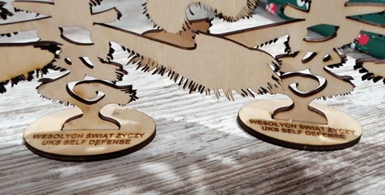 Pod koniec egzaminu Senpai Olek podziękował Shihan i Sensei za przeprowadzony trening i wręczył w podziękowaniu drobny świąteczny upominek w postaci „branżowej” choinki a zdającym senpai Klubowe bombki.