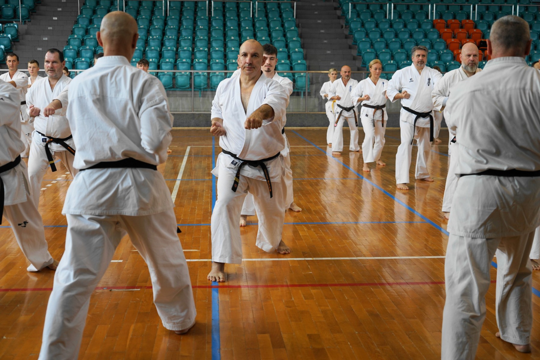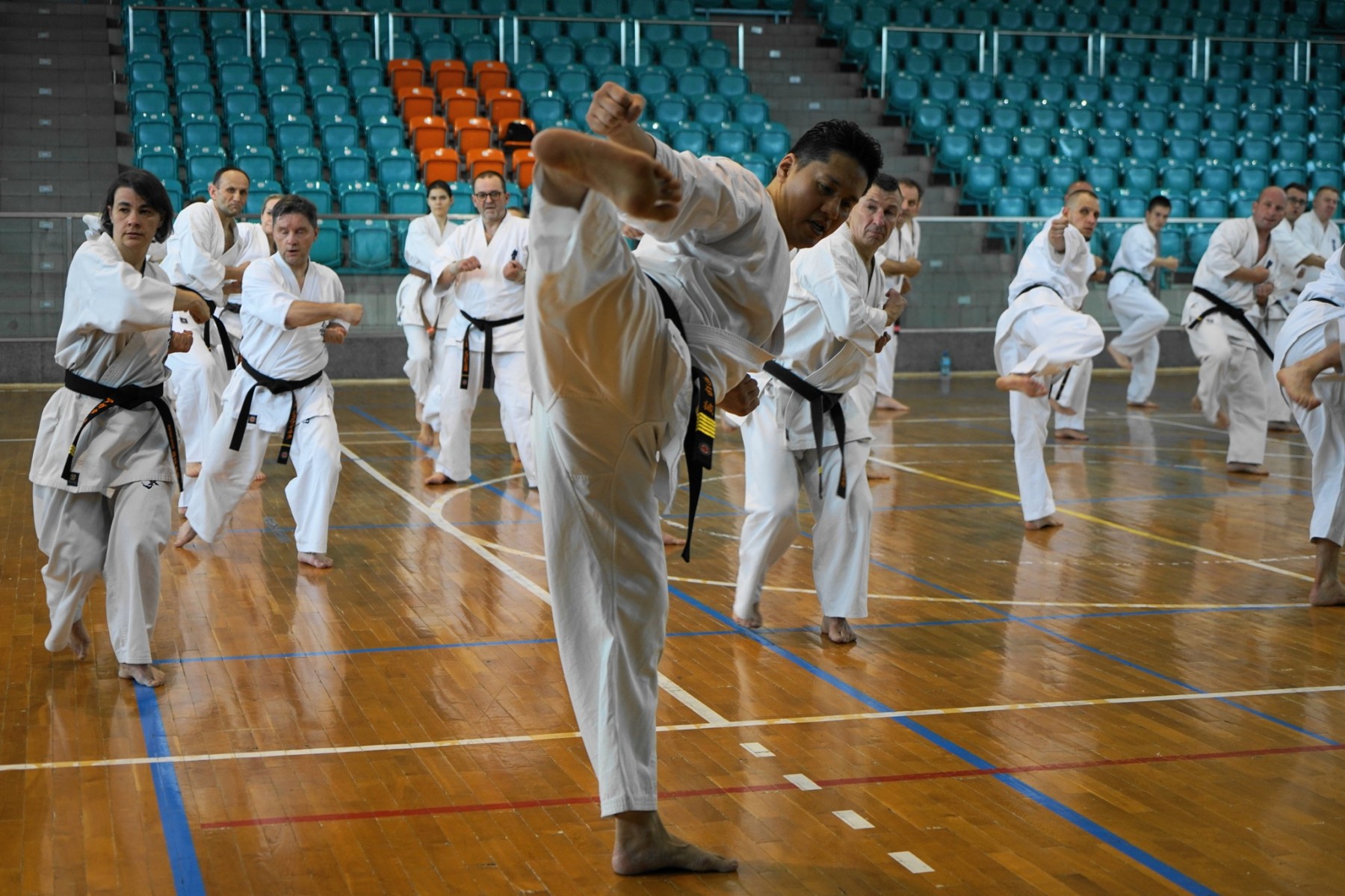 Shihan przeprowadził dwa bardzo intensywne treningi na których skupił sie we wszystkich częsciach treningu – kihon, ido geiko, kata i kumite na technikach z kata: seienchin, tekki san, sushiho, kanku.