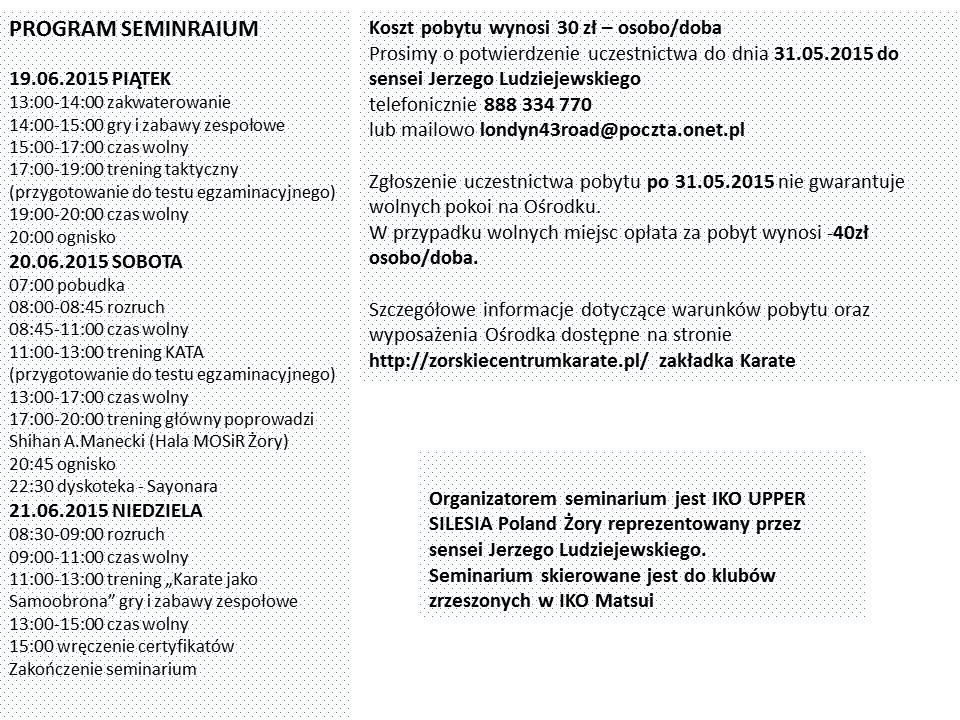 Zapraszamy do udziału w Seminarium w Żorach w dniach 19-21. 06. 2015